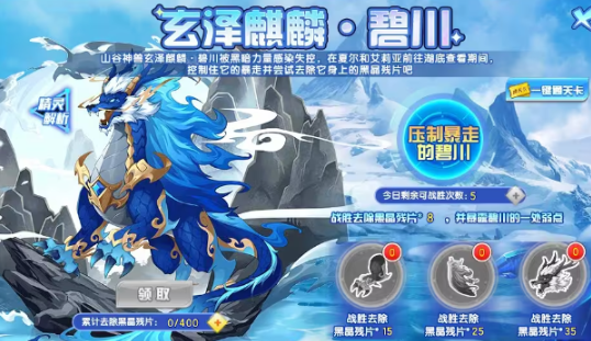 在游戏中就是一个新的活动地点,在这一个关卡中还有很多的boss,如果玩家将boss打败就可以获得黑金碎片,最终就能得到大家所喜欢的玄泽麒麟.碧川精灵。西普大陆手...[详情]