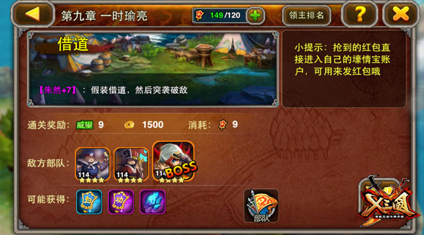 “小提示:抢到的红包直接进入自己的壕情宝账号,可用来发红包!”这个在红包推出之后又重新优化过的功能,不卖力推图肯定就不知道鸟!随着《兵临三国》的新玩法越来越丰富,小提示的作用也变得更加重要!不仅是小白新手,连老玩家偶尔也要在小提示面前驻足一会儿,了解最新三国时事!