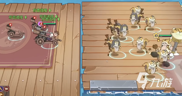 作为一名资深玩家,我来补个评价。这款游戏的设定非常独特,整个场景设置在水上,有点类似于古代的草船借箭,不仅城市漂浮在水面上,很多道具也和这个主题紧密相关,可见项目组在创意方面下足了功夫。美术设计和装备系统我给满分,游戏中的装备种类繁多,每次升级时都会随机获得装备卡,通过挑选不同的卡牌来构建自己的阵容,这样的设计让游戏不再仅仅是单调的数值堆叠。