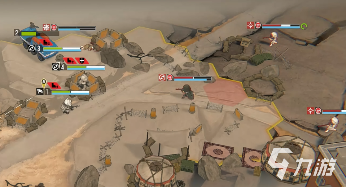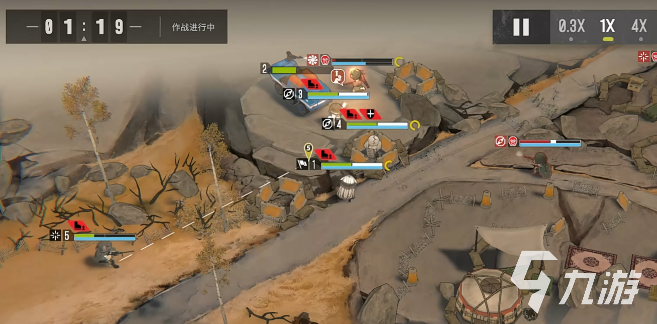 这里的核心玩法是即时战术操作,玩家通过单指框选单位、双指缩放视角等简易手势指挥战斗。战场采用六边形格地图,地形要素对战术影响更大,山地可提升远程单位射程但减缓重装移动,丛林提供隐匿效果,废墟墙体可被破坏以开辟新路径。玩家需根据环境调整部署,例如利用工程兵建造碉堡或医疗站,协同侦察兵标记隐藏敌人,形成步坦协同的战术链条。