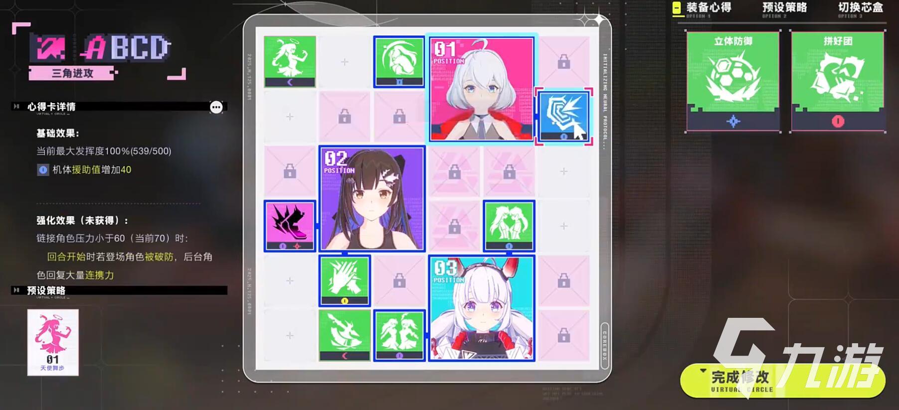 除了日常安排,你还会遇到各种随机职场事件,比如公关危机或粉丝互动,你的不同选择可能会改变角色间的关系,甚至影响她们的战斗风格,解锁隐藏剧情。战斗方面采用3对3的自动战斗模式,你在战前需要精心编排阵容,利用好属性克制关系,特定角色组合还能发动合体技。战前配置时,你可以用积累的直播积分购买心得卡,将其放入芯盒系统中,为角色提供各种被动效果或主动技能。