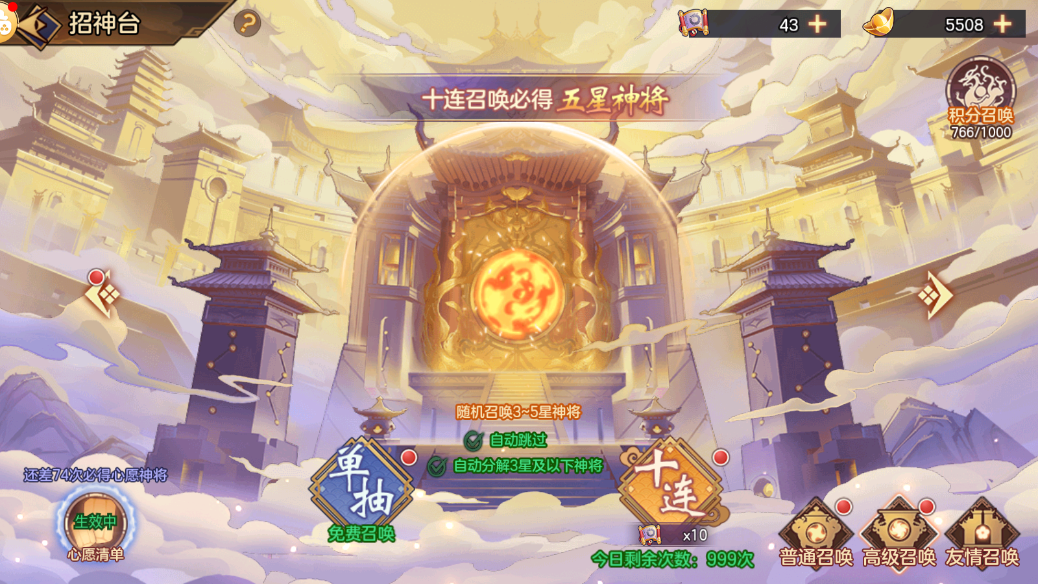 太辣鸡了,不充钱没法玩,处处提示你充值,十连抽2000元宝。你一天连1000都不到。神将是什么垃圾?黑白无常有阎王牛逼?孙悟空不如通风?二郎神连SSR都不是?别测了。直接删把。抽卡什么垃圾。五星还有SR英雄。我TM笑了