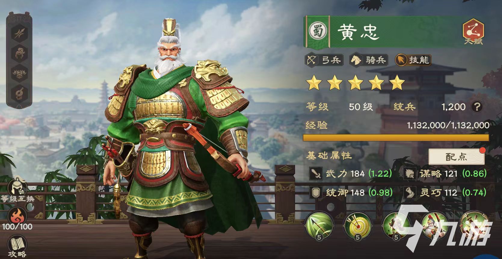 黄忠虽然在武力成长方面略低一些,但是自身属于技能流路线,可以提供较高的主动技能伤害,而且黄忠大多数时候都是作为副将,所以基础属性并不太重要。它的优势在于自身的被动可以给部队提供高额伤害加成,在主将和副将释放技能之后,有概率回满怒气,这样就有机会一次性释放两位主动技能,可以快速压低敌方的兵力,爆发非常高。虽然受到概率影响,但依然是战斗中的佼佼者。