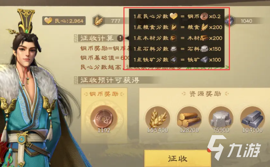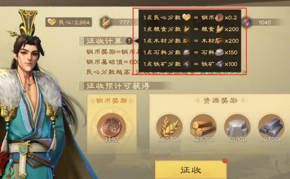 成功击败占领封地的贼寇们不仅能扩建当前的封地,还能获得武将和民心图纸,不过由于越是开拓,后面越到的敌人也就越强,所以建议各位逐步提升战力后,再前去挑战,封地的开拓和建筑都能带来更多的民心,民心值在5000时,每一次征收就能帮助获得1600的铜币和其他资源,所以有空闲时间一定要去摆放好建筑。