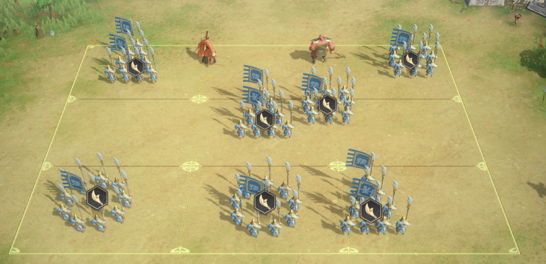 此处主公们要注意,冲轭阵摆放如图,将张飞和刘备略微放前,使其第一时间能放技能即可。