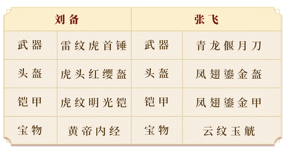 此处张飞可选择反击类套装。刘备可选择生存类套装(提升和其他队伍组队的通用性),也可以选择和张飞一样的装备。