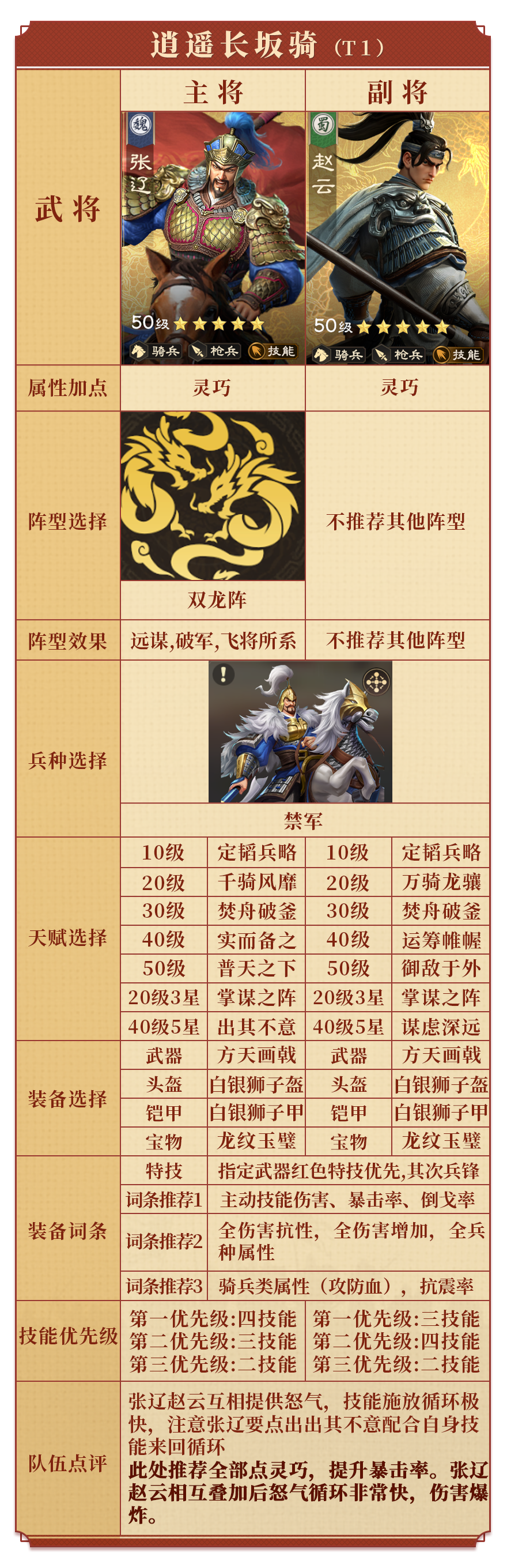 有一定预算时可用,抽到张辽即可组成较强劲的技能体系。军政需培养禁军和骑兵的技能方向。