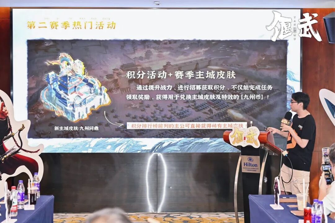 互动环节中,主公们与策划深度 Battle,现场试玩的主公更是实时反馈,策划团队一一记录回应。交流会尾声,赛季福利活动全部揭晓,功勋玉玺兑换珍稀特技、积分兑换 “龙吟九州” 主城皮肤,将新赛季期待值推向顶峰。