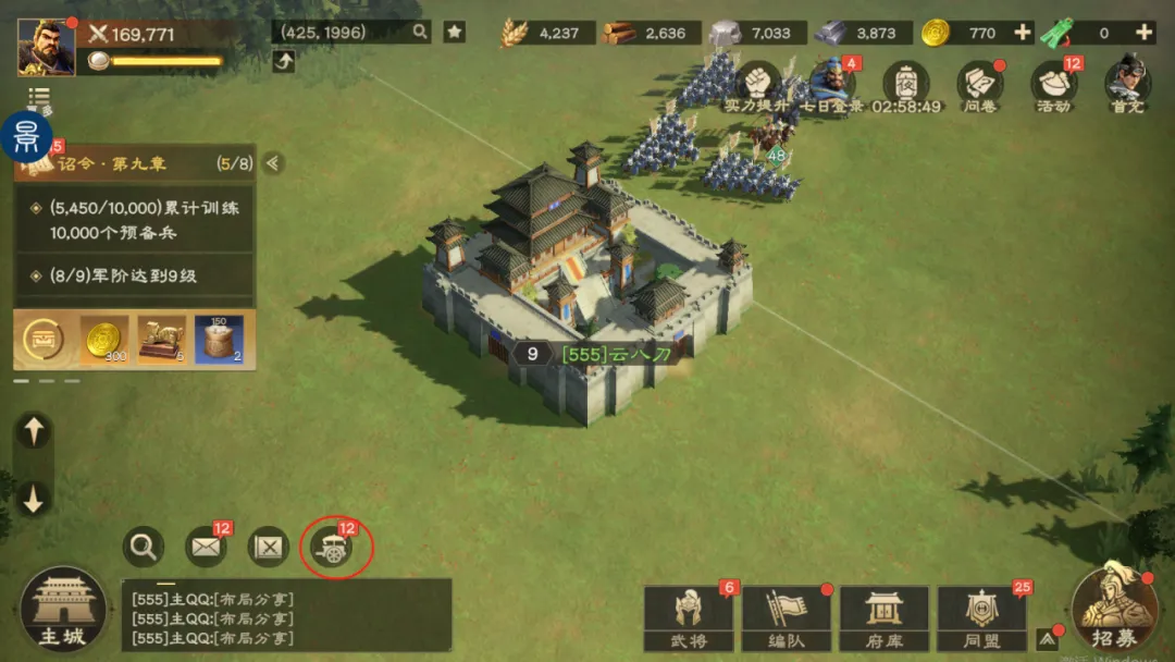 零氪玩家自身部队实力较弱,故在与敌对同盟进行PVP战斗时,主公应当充当“车尾”位置。