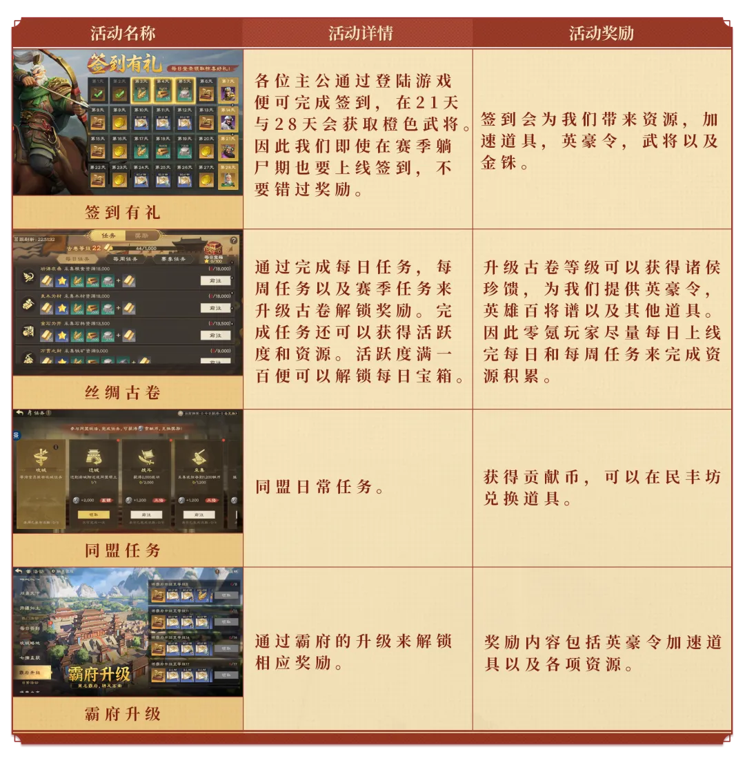 零氪玩家在赛季进程中,可以通过参与游戏中的各种免费活动以及固定玩法获取丰厚奖励,来提升自身队伍强度以及建筑科技升级进度。