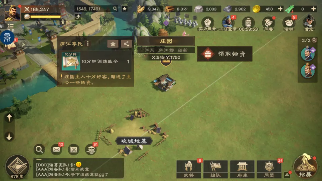 而我们拜访不同庄园则会为主公们奉上各种物资。因此零氪玩家可以选择升级校事府来加快谋士寻访速度,方便我们更快拿到奖励。