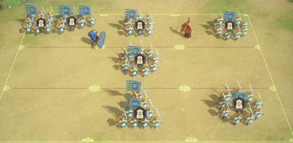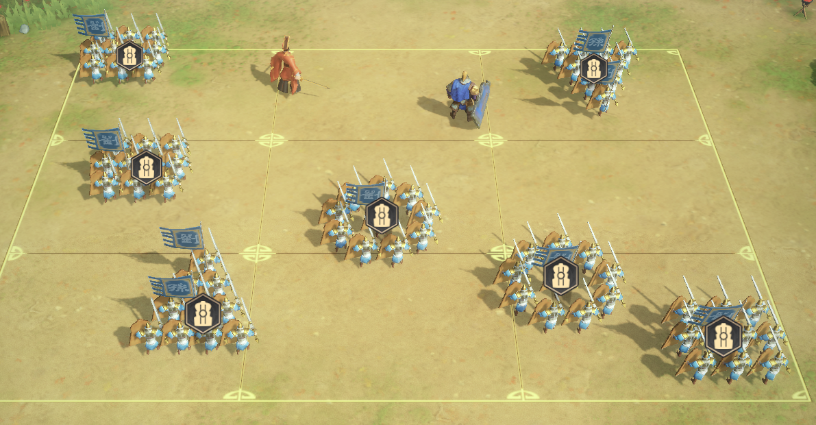 此处注意,天覆阵摆放如图,将曹仁和刘备略微放前,使其第一时间能放技能即可。