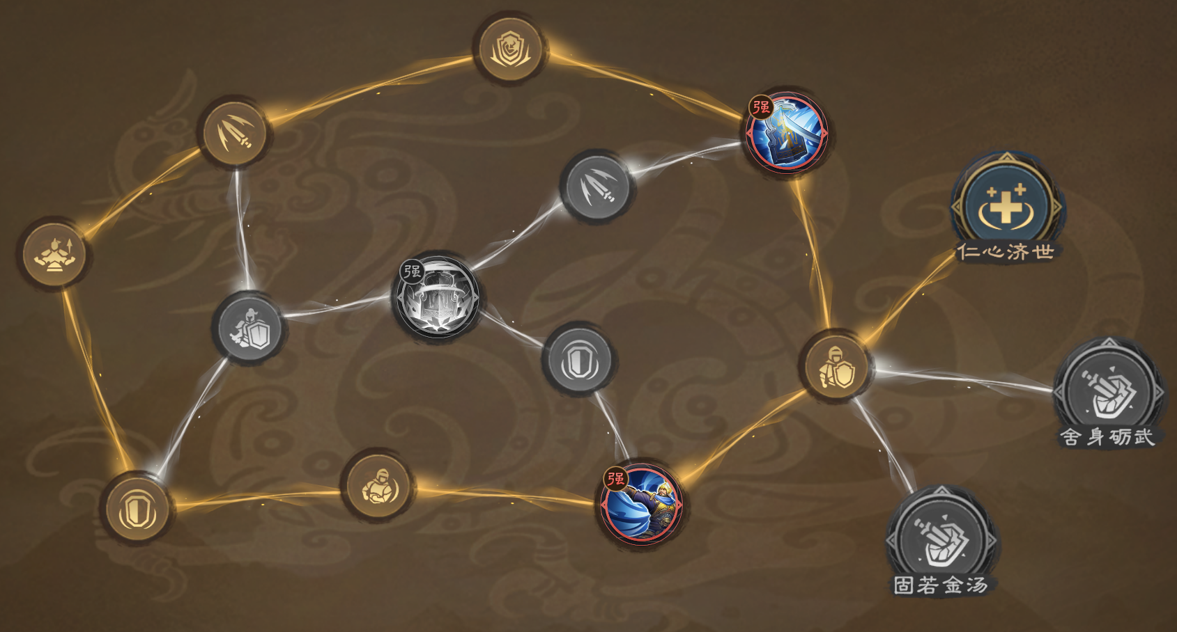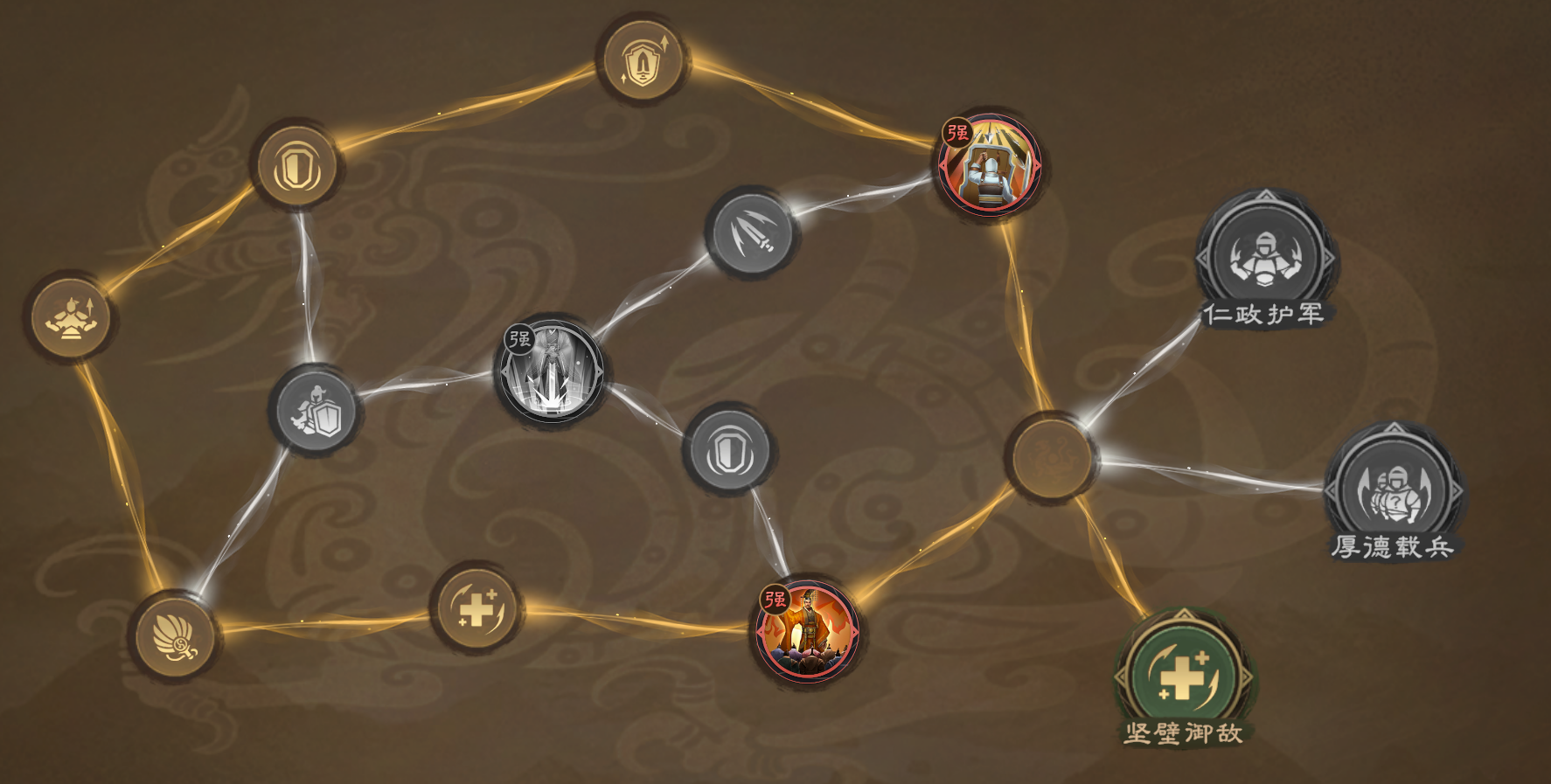 其中“玄德升闻·强”、“王霸之略·强”都能有效提升整体队伍的生存能力。不点“天地玄黄·强