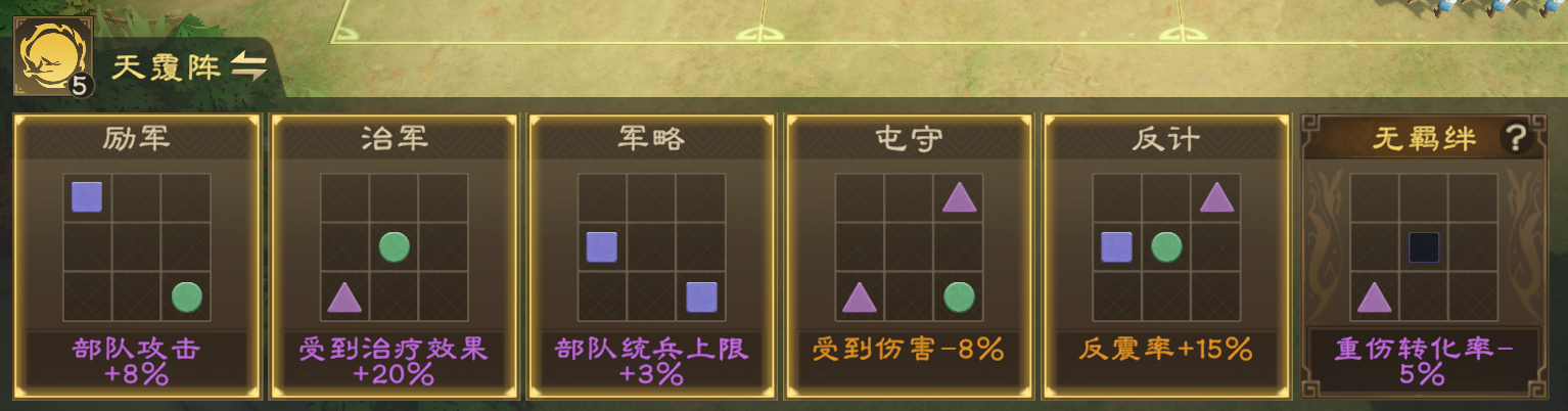 ●阵法选择上,既可以选择天覆阵,增强对普攻体系的克制,提升治疗能力;