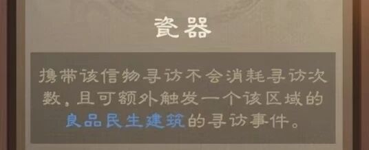 在《偃武》中,瓷器并不是一种直接的建筑资源,而是涉及到文化或装饰方面的元素。游戏中瓷器是派遣使者寻访时所带的信物,有了这瓷器,便可节省消耗主公们的寻访次数,同时还会触发一个当地的良品民生建筑的寻访事件,可谓是不可或缺。