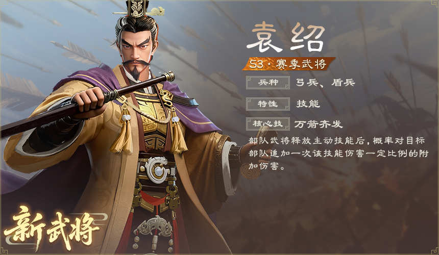 主公参与S3赛季的远征再起活动,保证每日活跃,完成每日任务,可通过领取累积宝箱获得——名将袁绍。活动将在开服后立即开启,共持续7天。