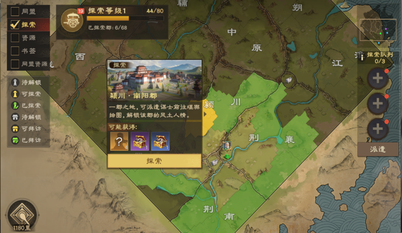 · 主公可派遣谋士重新探索新的地图,领取探索奖励,触发稀有奇遇;