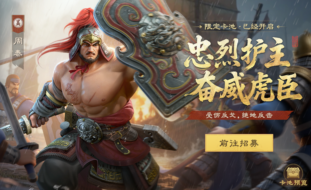 周泰限定卡池将在开服后立即开启,共持续3天。