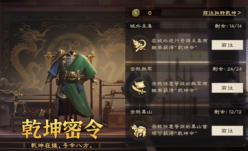 S3赛季将重新开启装备活动扭转乾坤,主公可消耗乾坤令或者金铢转动转盘,获得海量装备材料;此外,S3赛季的累积秘宝中相较S2可获得更多的稀有奖励,以助主公打造心仪的神兵利器。