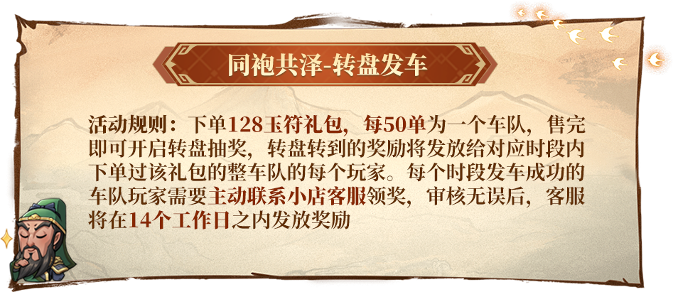 活动期间,定制礼包一旦售罄,将立即启动转盘抽奖。转盘指针最终停留的奖项,即为本轮所有成功下单玩家均可获得的对应奖品。多拍多得。