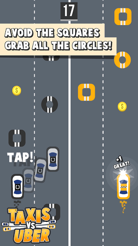 《优步vs出租》是一款可以两个人一起玩的休闲小游戏。游戏非常时髦的设定为优步和出租车的比赛,一黑一黄两辆车,黑车是优步?游戏需要两个人一起玩,与其说是比赛,倒不如说是配合,因为有一方失败,游戏就将结束,或许传递着优步出租车一家亲的美好愿景吧。当然,也有脑力出色的玩家可以一个人玩这个游戏,对此小编深表敬意,这让人想起“姑姑”的“左手画圆,右手画方”。