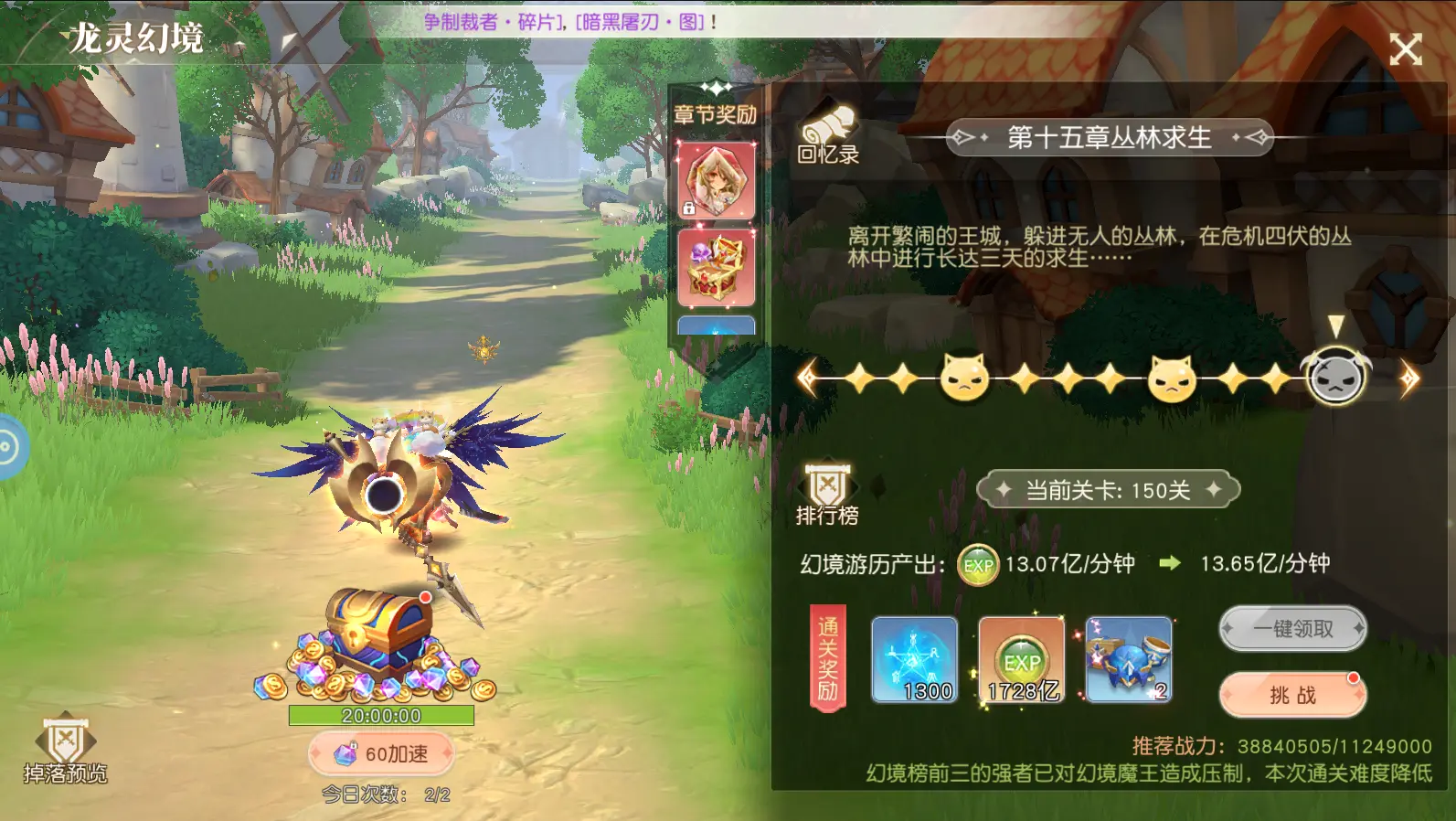 章节奖励可获得海量经验,龙之力等,迅速提升等级和战力。