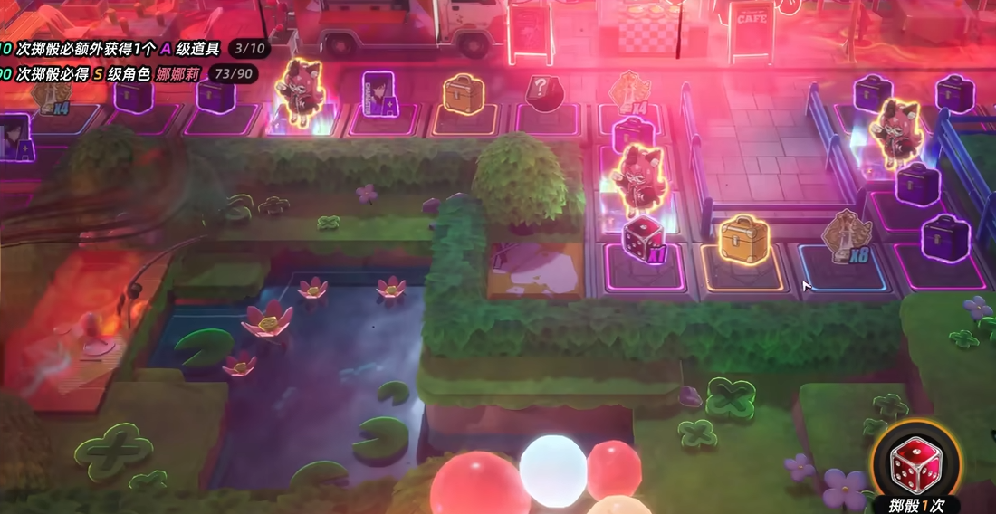 触发这个机制后,20次内基本是能获得S级角色的,此时概率高达18.9%;S级角色恶核弧盘概率大约是22.8%;且每10抽还获得1个额外的A级道具。抽卡模式也是非常有趣的,叫做斯卡布罗集市,类似大富翁的棋盘,通过掷骰子的方式走格子,在棋盘移动,移动的格子位置就是对应奖励内容。