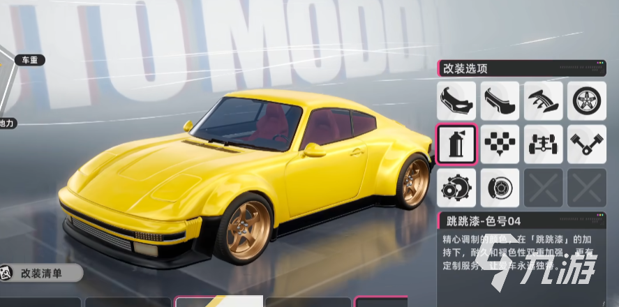 车辆开久了也会有损耗,或者说刚开始钱不够,买的车不是很满意,这时候就可以借助车辆改装系统,在改装店里面可直接查看改装方案,或者自行DIY,比如颜色,喷其他的漆,还可以改装轮胎,保险杠等等,当然这些安装后,会有统一的价格。