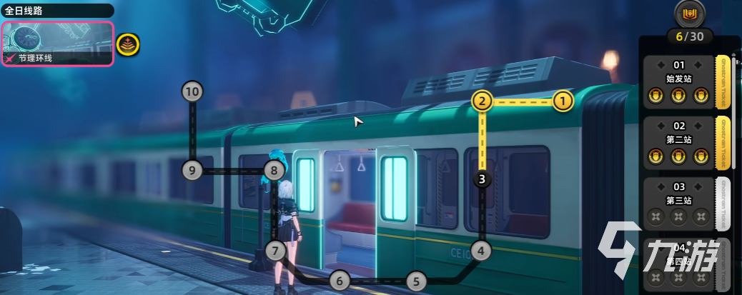 轨外之境需要我们乘坐电车闯关,目前总共有10站所以也就是10个关卡,每完美过一关能得到3个猫头鹰徽章和关卡的单独奖励,不同关卡点进去都有着自己的挑战目标,像是第3关就要满足击败所有敌人、剩余时间大于240秒、剩余时间大于300秒的条件,3个都达到才能拿到3个徽章。