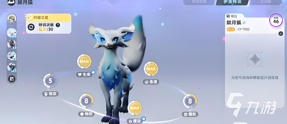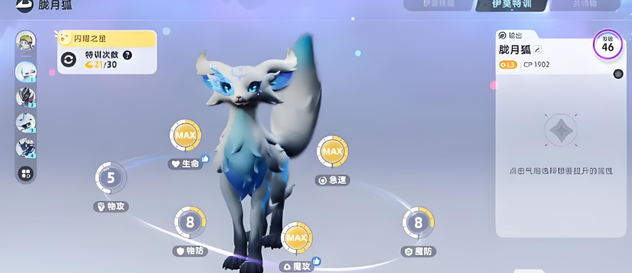 胧月狐在玩家开局时就会直接赠送,无需额外获取,其个体值固定为五项全满,属性面板在平民阶段属于顶尖水准,是前期性价比极高的强力神宠。而且它的进化速度比其他伊莫更快,玩家只需将胧月狐培养到18级,再完成“朝村花”相关任务,就能触发进化。进化后不仅外观会发生变化,还能解锁特殊强化技,进一步提升实战能力。