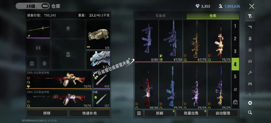 每个仓库都是一个传奇,而在枪械收藏家/武器大师的手中,仓库已俨然成为了他们的军备武装库,满级枪械、海量武器战备齐聚,这样的萤火虫,就问你猛攻怕不怕?!
