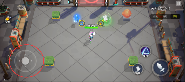 2)在摇杆响应范围内手指按下后,进行滑动操作,角色根据手指滑动方向移动,手指离开屏幕,则操作终止。
