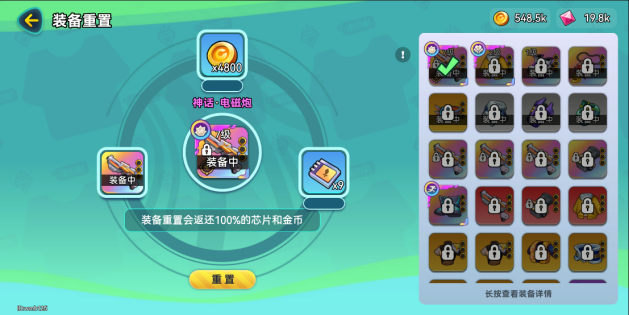 升级后的装备选择降级(点击装备信息界面的降级按钮),将装备放入,可以将装备降级/降品,降级/降品后将返还所有消耗的材料、金币。