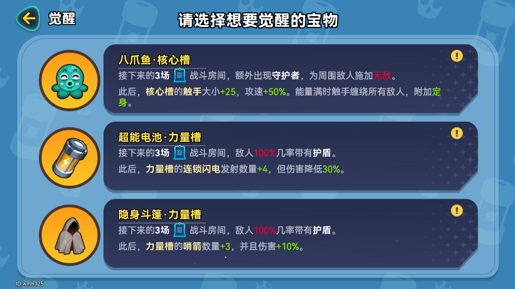 1) 地图中会随机出现神秘房间入口,进入神秘房间可以觉醒身上已有的宝物。