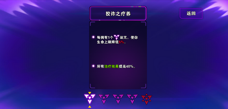 1) 在特定关卡中,局内每次通过房间时会获得诅咒值,诅咒值达到一定数量时会获得诅咒效果。