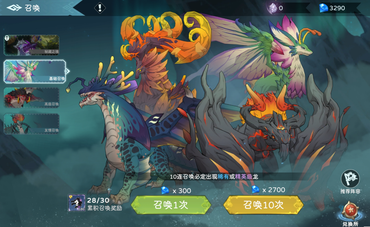 玩了一会儿,高级召唤,限定召唤暂时只能通过月卡和充值礼包获得,后面会不会出不钻石购买不清楚,现在钻石只能抽常驻池,常驻池里没有3S龙,也就是说,钻石只能用来抽狗粮,还有就是,这游戏有VIP特权,平民党,白嫖党想要入坑之前,要做好心理准备