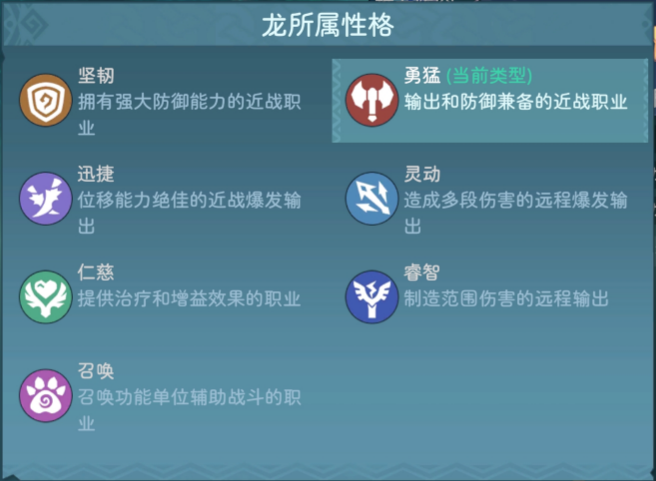每条龙定位鲜明,分7大类:坚韧、勇猛、迅捷、灵动、仁慈、睿智、召唤。根据对局情况合理搭配阵容是致胜的关键。