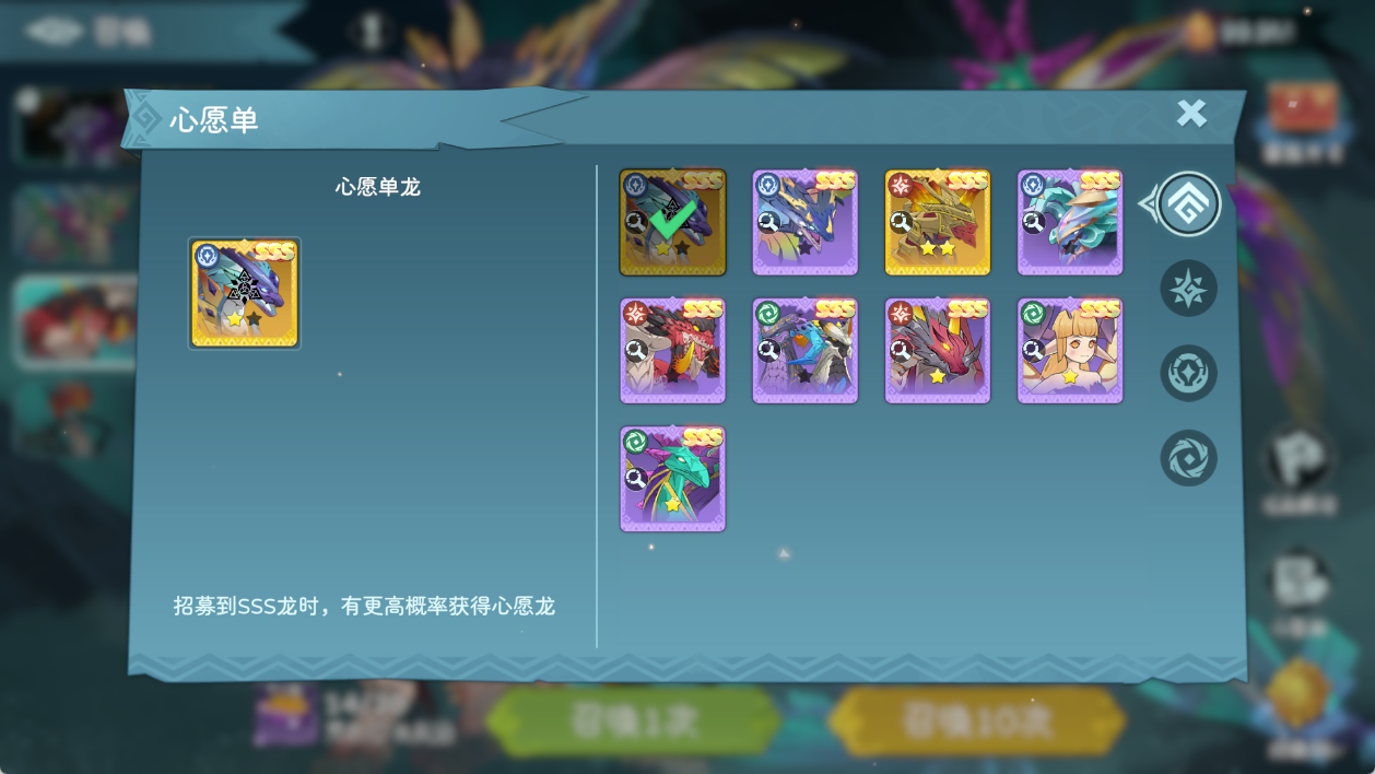 ①心愿单:在「高级召唤」中,驯龙师大人可以将您的梦中情龙放在心愿单里,它出现的概率会大大大大提升!