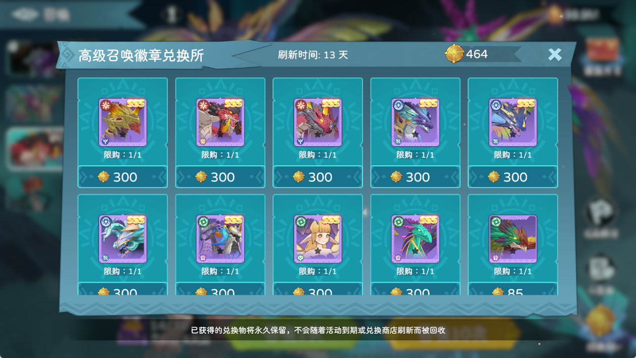 ②徽章奖励:在「高级召唤」中每召唤1次,将会获得1张“高级召唤徽章”,大人可以将其积攒起来,去 “高级召唤徽章交换所”中兑换更多丰富的奖励