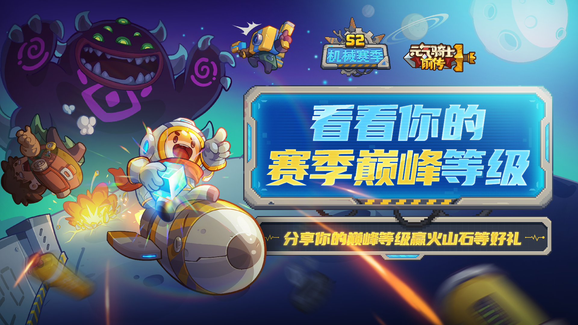 小骑士们劳动节快乐!距离《元气骑士前传》S2机械赛季上线已经有几天啦,S2赛季除了新增的机械改造玩法外,还有赛季巅峰“科技核心”等待大家体验哦!