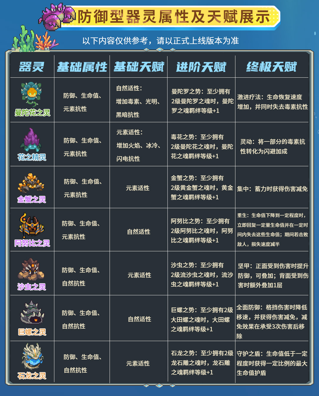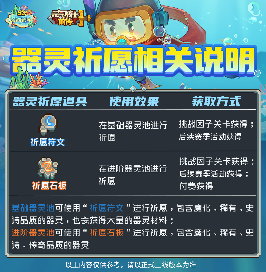 S3赛季开启后,游戏内将会上线如下器灵: