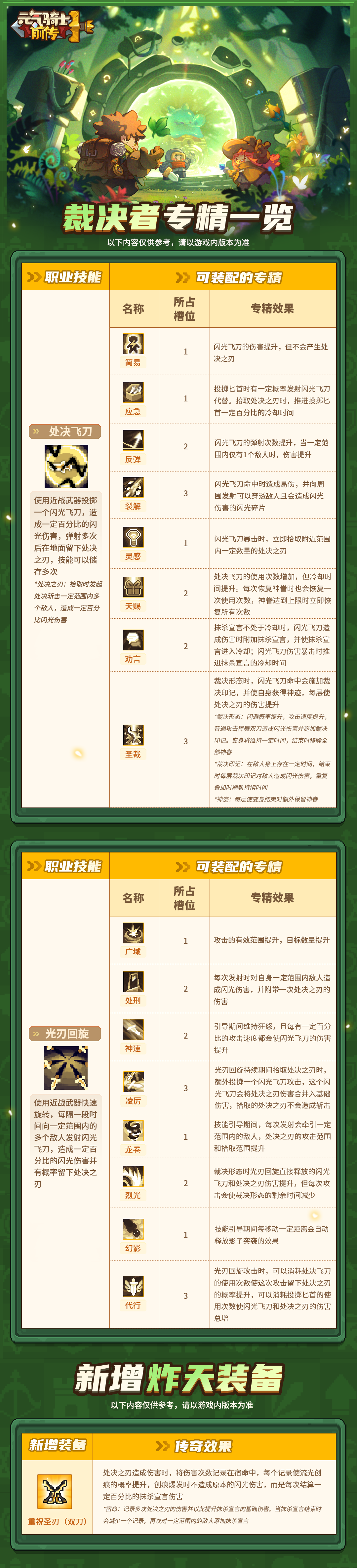 裁决者的【光明法球】专精可见“自然使职业专精一览”,【影子突袭】专精可见“游侠职业专精一览”。