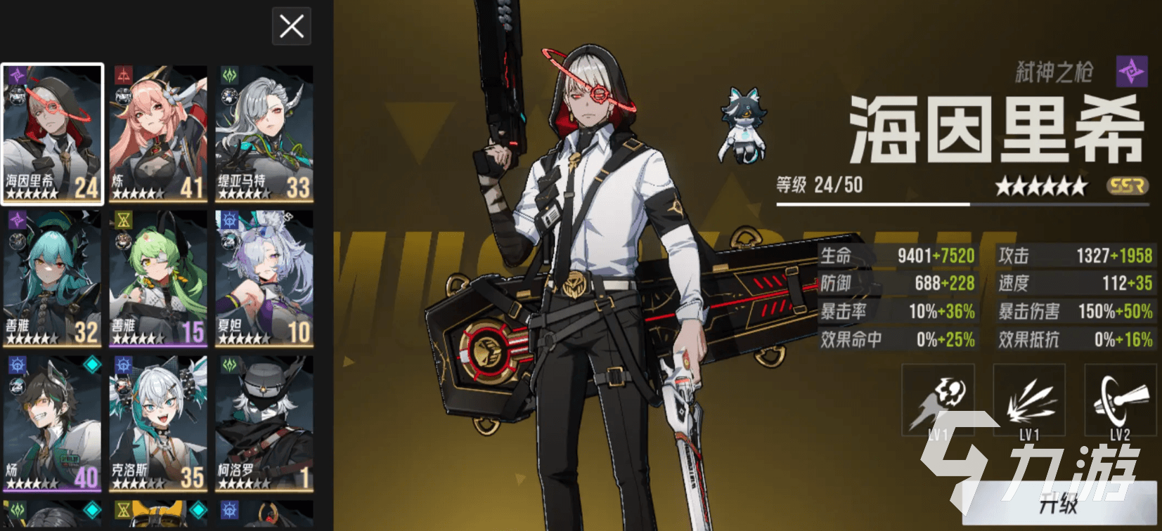 海因里希主打功能输出,有着禁疗、禁强等特殊效果,需要叠层才能出伤,在pvp比较乏力,但在pve中好用,他的临别会用手枪攻击,对单体敌方造成240%输出,并有45%几率附加闭锁,让其无法被附加上增益,他的“死神之眼”是在每次攻击时有一半几率驱散目标的一个增益,对手身上没有可以驱散的增益时会改为附加遗言,遗言能让中招者被暴击时受到更多的伤害;