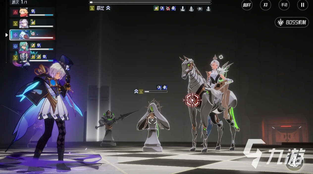 菲比安虽然也难,但可以依靠逃课打法来快速通过,这里带恶命就能直接逃课,带卡奇主要是为了防止嘲讽没中的情况,此时可以用他的二技能拉回来,注意这个打法的要点一,就是梨梨的双生戏法一定要给恶命,务必要嘲讽住哪怕打的慢点也没有关于,要点二就是要先把左右两个棋子给打掉,然后再打掉一个棋子,最后一个一定不要打死,慢慢把boss给磨死就可以了。