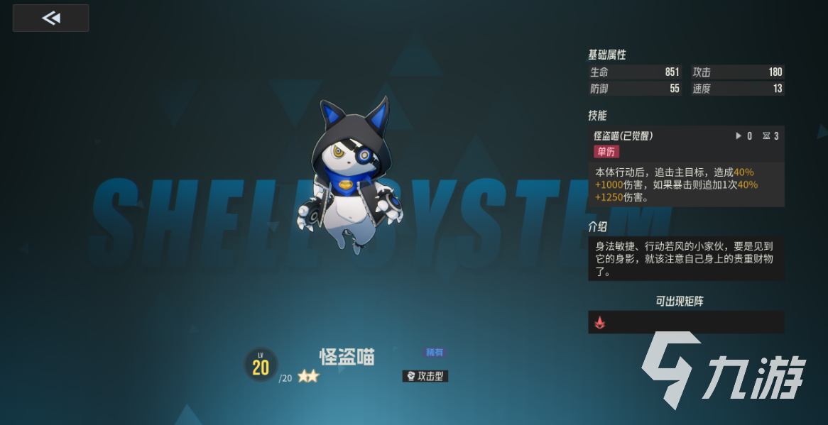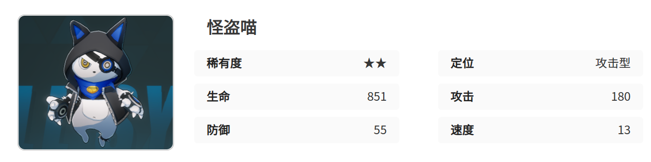 怪盗喵作为辅助,他的基础属性并不是特别的突出,虽说比较平凡,但是玩家对他深入了解以后才发现有独特的战术,并且在技能机制方面也能够发挥着重要的作用。在伊瑟游戏中怪盗喵并不是直接输出,也不是单一的靠策略性,只是需要将策略跟输出完美地结合在一起。由于怪盗喵的追击伤害技能,在本体行动以后就可以对主目标造成百分之40+1000的伤害,如果触发暴击还能够额外追加一次伤害,因此在选择给怪盗喵搭配队友的时候,可以选择高暴击率的队友。