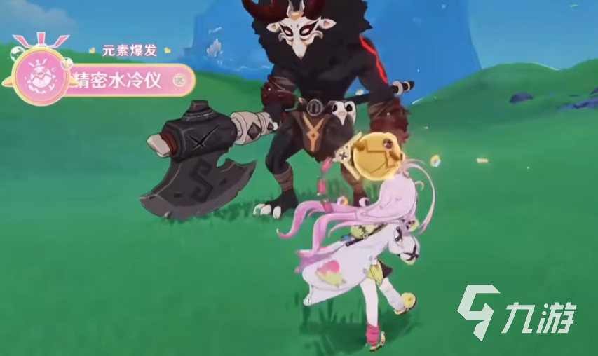 元素战技”精密水冷仪”,将名为“冷静一下鸭”的召唤物扔出去,这是1种特质喷水机关,会展开对点水领域,在范围之内,会间歇性发射水弹,让敌方受到水元素伤害;敌方受到的伤害比较可观。