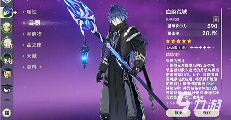 专武“血染荒城”绝对是优先选择的,能完美契合其高爆发的需求;其他可选的武器上,像赤沙之杖、支离轮光等长柄武器也是可以的,如果这些都没有,可以先去选择西风大剑或锻造武器万能钥匙、拾慧铸熔等来进行过渡。
