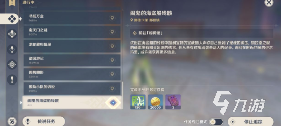 完成了闪光点的调查后,继续前往沉船上在上面还有多个闪光点,这些闪光点全部需要探索,完成探索后,接下来需要回到秘闻馆位置,然后可以触发额外的任务,这个任务需要玩家找到祖潘与其交流接取,之后按要求完成任务就可以拿到线索了,这么一来就完成了现阶段的收集了。