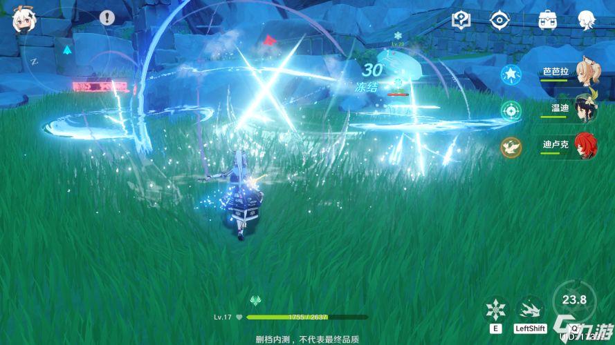 她的元素属性是冰属性,并且是剑术大师。她的武器是单手剑,能够击中五个连击。她的强大打击可以同时发射三把剑灵。她可以在冰上行走,许多小伙伴都期待着她。