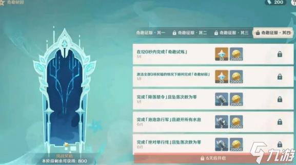 3、除了蓝票以外,玩家在每个阶段完成之后,游戏会根据玩家的完成程度分发闯关奖励,四个阶段,每个阶段都会有60原石。完成每个小节闯关,会得到;两万摩拉以及两本蒙德璃月天赋书。